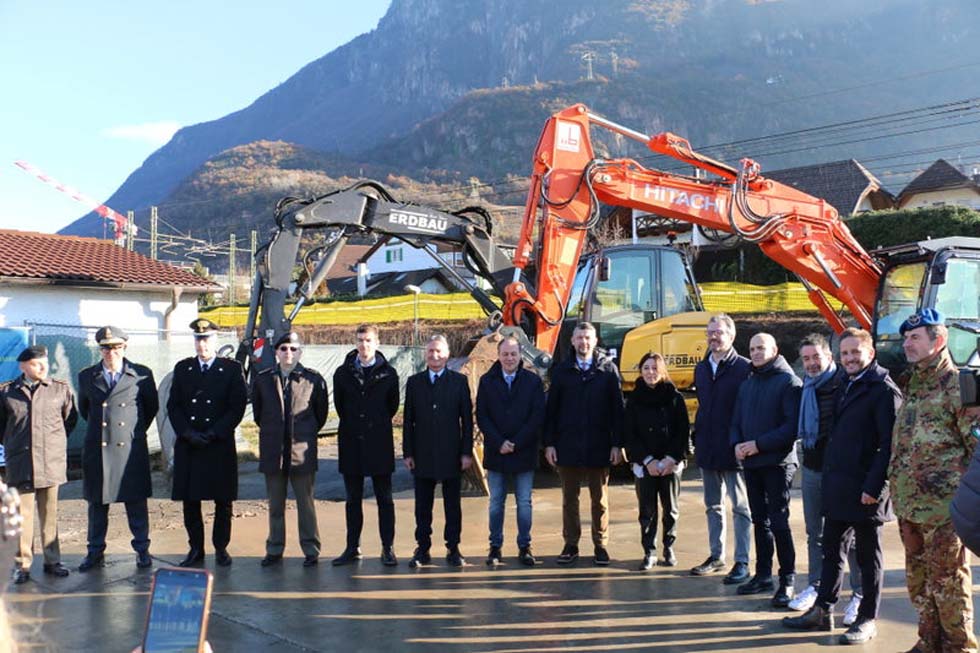 ![]() Gruppenfoto auf der Baustelle für die neue Zughaltestelle St. Jakob: Verantwortliche der Politik, Ordnungskräfte und des Mobilitätsbereichs verweisen auf das zusätzliche Angebot, das für Pendlerinnen und Pendler entsteht. (LPA/Patrick Thaler) |