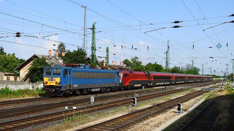 17.06.2019 Nicht alltäglicher Alltag.. Nachdem die 1116.216 beim RJX 66 (Budapest - München) am 13.6.2019 in Ungarn untauglich wurde, erfolgte die Weiterfahrt bis zur österreichischen Grenze mit der START 630.138. Fotografiert bei der Einfahrt in Hegyeshalom(H).... |