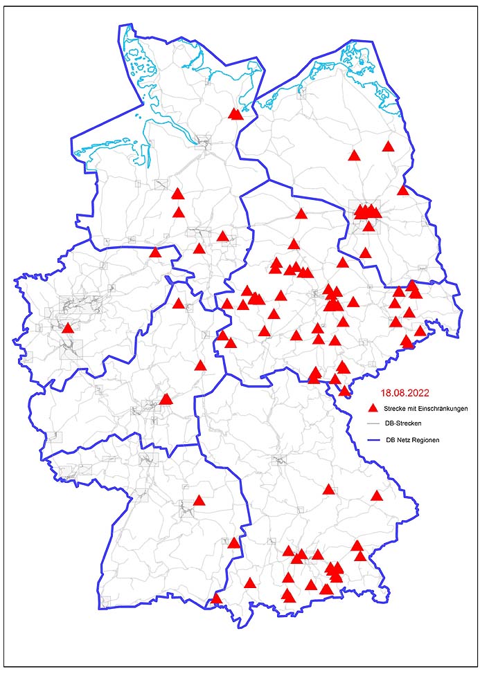 Das umfangreiche Inspektionsprogramm der Deutschen Bahn (DB) bei Betonschwellen im Schienennetz steht vor dem Abschluss. Seit Juli prüfen Experten der DB bundesweit rund 200.000 Schwellen eines bestimmten Bautyps und Herstellers. Ende August werden die Inspektionen beendet sein. Die Arbeiten erfolgen vorsorglich, da im Zusammenhang mit dem Unfall bei Garmisch-Partenkirchen am 3. Juni auch Schwellen eines bestimmten Bautyps von den ermittelnden Behörden geprüft werden. Auch wenn die Untersuchungen noch nicht abgeschlossen sind und die Unfallursache noch nicht feststeht, hat die DB vorsorglich entschieden, baugleiche Schwellen im Netz zu untersuchen. Erste vorläufige Erkenntnisse aus technischen Gutachten unabhängiger Prüfinstitute legen nun den Verdacht nahe, dass ein Herstellerfehler vorliegt: Die Schwellen weisen teilweise Unregelmäßigkeiten in der Materialbeschaffenheit auf. Überall dort, wo die Experten Auffälligkeiten entdeckt haben, hat die DB umgehend reagiert. In den meisten Fällen, überall wo nötig, fahren die Züge langsamer über die betroffenen Schwellen. Vereinzelt musste die DB auch Streckenabschnitte sperren. Fahrgäste und Güterverkehrskunden bekommen die Auswirkungen leider zu spüren: Umleitungen, längere Fahrzeiten oder auch Schienenersatzverkehr lassen sich durch die Arbeiten nicht vermeiden. Die DB bedauert die Einschränkungen für ihre Reisenden und Kunden sehr und bittet alle Betroffenen um Verständnis und Entschuldigung. Aktuell gibt es in Folge der Untersuchungen an insgesamt rund 165 Stellen im Schienennetz Einschränkungen. Betroffen sind schwerpunktmäßig die Bundesländer Bayern, Sachsen, Sachsen-Anhalt und Thüringen. Die DB arbeitet intensiv daran, die Beeinträchtigungen für Fahrgäste und Güterverkehrskunden schnellstmöglich zu beseitigen. Auf ersten Strecken hat die DB die Schwellen bereits austauschen können, für rund 90 Prozent der betroffenen Streckenabschnitte sind bereits konkrete Bautermine eingeplant. Die Priorisierung der Arbeiten und Ersatzkonzepte werden mit den betroffenen Eisenbahnverkehrsunternehmen und Ländern eng abgestimmt. Ziel ist es, dass nahezu alle betroffenen Strecken bis Ende des Jahres wieder regulär befahrbar sind. Klar ist aber auch: Der Austausch der Schwellen wird sich teilweise bis in das kommende Jahr ziehen. Eine Taskforce der DB koordiniert die aktuell knappen Bauressourcen so, dass sie möglichst effektiv eingesetzt werden können. Dabei haben zunächst die Strecken Priorität, die besonders hoch ausgelastet und für einen stabilen Fern-, Regional- und Güterverkehr im gesamten Netz von großer Bedeutung sind. Die notwendigen Materialien stehen zur Verfügung: Auch in Zeiten von Materialknappheit ist es der DB gelungen, ausreichend neue Schwellen am Markt zu sichern. Der entstandene Schaden lässt sich derzeit noch nicht konkret beziffern. Die DB geht von einem dreistelligen Millionenbetrag aus. Mögliche Regressansprüche gegenüber dem Schwellenhersteller werden auf Basis der abschließenden Gutachten juristisch geprüft.