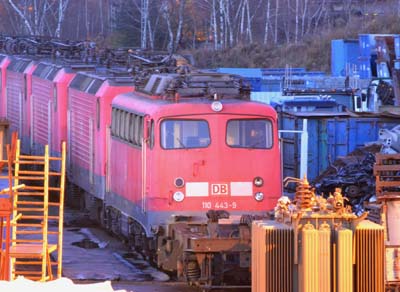 Bender: 110 443 wartet noch immer auf die Zerlegung Es tut sich aktuell nicht viel beim Bender, aktuell wird sich um andere Arbeiten gekümmert. Am 7. Dezember 2011 wartete am Abend immer noch die 110 443 auf die Zerlegung. Auch das Drehgestell der 143 128 steht noch immer da.