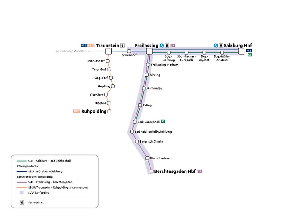 Die Bayerische Regiobahn (BRB) übernimmt künftig die Strecke der Berchtesgadener Landbahn (BLB): die Linie RB 53: Traunstein – Ruhpolding. Das Wichtigste: Der bewährte Takt blieb erhalten Der Fahrplan ist vom Grundtakt her unverändert. Ergänzend wird es von Montag bis Freitag jeweils mittags eine zusätzliche Fahrt zwischen Freilassing und Traunstein geben. Neue Züge: Mehr FLIRTs für die Region Zwei neugebaute Flirt3-Fahrzeuge bringen Sie künftig ans Ziel – mit modernster Fahrgastinformation via Deckenmonitore, mit fortschrittlicher Klimatechnik für hohe Luftaustauschfrequenz sowie mit optimaler Barrierefreiheit. Zusätzlich verfügen die Triebwagen über Fahrgast-WLAN, eine größere Anzahl an Steckdosen inklusive USB-Anschluss sowie klappbare Mittelarmlehnen an allen Sitzen. Für gesteigerten Komfort sorgt das größere Platzangebot mit ca. 50 Sitzplätzen mehr als bisher. Der Ticketkauf: Auf vielen Wegen möglich Sie erhalten Ihre Fahrkarten bei unseren Kundenbetreuer im Zug, am schon heute bestehenden Fahrkartenautomaten in Traunstein, im BRB-Webshop sowie in unserer App „BRB – Tickets & Infos“. Für Ausflügler: das Guten Tag Ticket Das Traun-Alz-Ticket wird eingestellt. Dafür bieten wir Ihnen für Tagesausflüge neben dem Bayern-Ticket das Guten Tag Ticket an. Es kann von 1 bis 5 Personen genutzt werden und ist in allen BRB-Zügen gültig – von Füssen bis Salzburg, von Ingolstadt bis Berchtesgaden. Die Fahrradmitnahme bleibt auf der Strecke Traunstein – Ruhpolding kostenlos. Die Gästekarten Waging und Taching erkennen auch wir in unseren Zügen auf der Strecke Traunstein – Ruhpolding an. Für Pendler: Alles bleibt gleich Bestehende Abos behalten ihre Gültigkeit. Wer ein neues Angebot sucht, findet bei uns vielfältige Ticketlösungen. Dazu zählen Zeitkarten im Abonnement, Monats- und Wochenkarten sowie das 10er TagesTicket. Letzteres ist ideal für alle, die nicht mehr jeden Tag in die Arbeit fahren und sparen möchten. Die BRB: in der Region Zuhause Seit über 20 Jahren fahren wir von München über Rosenheim und Traunstein nach Salzburg. Und seit Dezember 2021 sind wir auch zuverlässig im Berchtesgadener Land unterwegs mit den Linien S3 (Freilassing – Bad Reichenhall) und S4 (Freilassing – Bad Reichenhall – Berchtesgaden). Jetzt freuen wir uns darauf, noch mehr Fahrgäste aus dem Landkreis Traunstein ans Ziel zu bringen.
