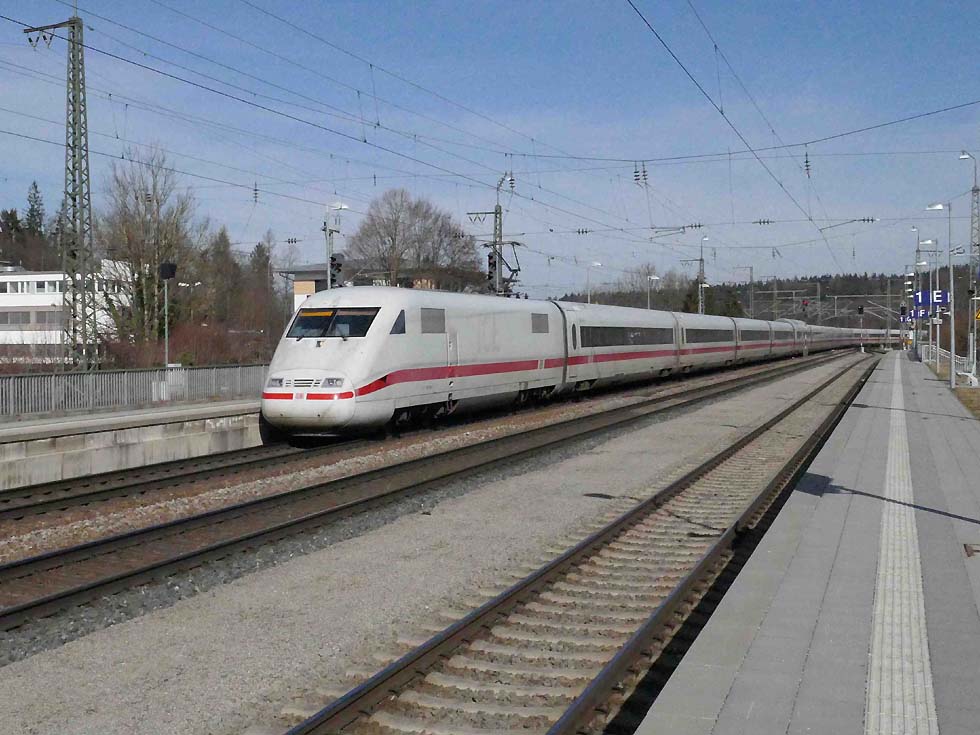 Ein ICE-1 im Alpenvorland Itzehoe' in Freilassing: ICE 401 006 als Ersatz für defekte EC 114-Garnitur am 16.02. Gleis 3 Bf Freilassing. (Peter Bleibinger) Gestern setzte die DB AG als Ersatz für den EC 114 den ICE-1 401 006 ein, womit wieder einmal ein ICE-1 südlich von München unterwegs war. Die beiden Bilder entstandne in Freilassing und Traunstein.