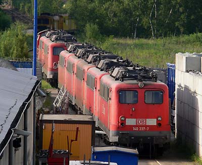 Bender, 17.06.2010 140 809 ++ 17.06.2010Der 140 337 mit DB CARGO Schriftzug geht’s als nächster an den Kragen, hier am Abend des 17.06.2010. Bei genauem Hinsehen erkennt man das geöffnete Tor und die Diesellok am Ende. Entweder werden die Loks auf ein anderes Gleis umgesetzt (z.B. wegen Trafotransport) oder sie schiebt die beiden vor dem Tor (140 547 + 712) in den Hochsicherheitstrakt. Quelle:/Fotos: Markus Tigges, 17.06.2010 | |