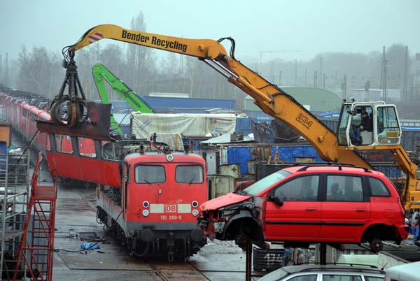 Nun wurde doch 110 320 vorgezogen und in den letzten Tagen beim Bender zerlegt: 110 320 ++ 29.02.2012 Am 1.3.2012 hat für 110 396 die letzte Stunde geschlagen – der vorbereitete/zerteilte Lokkasten wurde vom Greifer innerhalb weniger Minuten abgehoben.