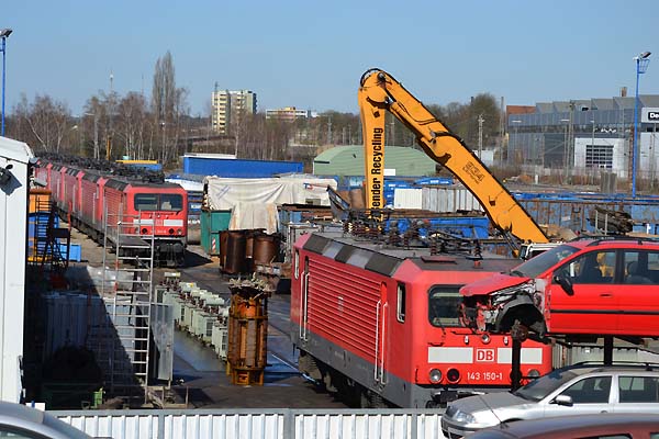 In den letzten Tagen wurden wie erwartet einige 143er ins umzäunte Gelände gezogen, sodass jetzt nur noch 2 vor dem Tor stehen. 143 150 wurde vorn an den Stutzen gedrückt und 143 341 führt die restliche Reihe 143er an. Bleibt abzuwarten, welche Lok als nächste „dran“ ist. Quelle:/Fotos: Markus Tigges | |