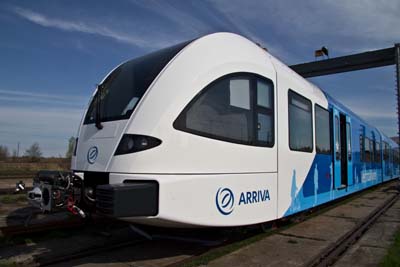 Roll-out des ersten GTW für Vechtdallijnen (NL) Arriva und Stadler Rail feiern heute gemeinsam den Roll-out des ersten elektrischen Gelenktriebwagens (EMU-GTW) für die niederländischen Provinzen Overijssel und Drenthe. Arriva Niederlande hat Mitte 2010 bei Stadler 14 EMU-GTW für die Konzession „Vechtdallijnen (NL)“ bestellt. Die Fahrzeuge wurden gegenüber den bereits erfolgreich im Einsatz stehenden GTW der Arriva in verschiedenen Bereichen weiterentwickelt.Arriva ist einer der grössten Dienstleister im Markt für öffentlichen Verkehr in Europa. Ihre Busse und Bahnen befördern pro Jahr mehr als 1,5 Milliarde Fahrgäste in 12 Ländern. Im August 2010 wurde das Unternehmen von der Deutschen Bahn übernommen. Arriva Niederlande hat im Juni 2010 insgesamt 38 Gelenktriebwagen GTW bei Stadler Rail bestellt, darunter die 24 für die Provinz Gelderland, 14 weitere für die Provinzen Overijssel und Drenthe. Insgesamt hat Arriva damit seit 2005 bereits 99 GTW für den Einsatz in verschiedenen Regionen der Niederlande bei Stadler Rail bestellt. Christian König, Leiter Verkauf Schweiz und Niederlande der Stadler Rail Group, freut sich über die erfolgreiche Abwicklung: „Wir sind stolz, dass in zwei weiteren Provinzen in den Niederlanden moderne Niederflur-Fahrzeuge aus dem Hause Stadler zum Einsatz gelangen. Auch diesen Auftrag konnte Stadler in kurzer Zeit abwickeln. Dies war nur dank des grossen Einsatzes und Engagements aller Beteiligten möglich. Ihnen gilt mein besonderer Dank.“ Anne Hettinga, Director Arriva Netherlands: „Dieser Auftrag ist ein Meilenstein für unser Unternehmen. Mit dem Roll-out können wir unseren Kunden zeigen, dass wir mit der Fahrzeugbeschaffung auf Kurs sind. Die Provinzen als unsere Kunden werden erkennen, dass diese Fahrzeuge sogar weit über die gestellten Anforderungen hinaus reichen.“ Die Fahrzeuge basieren grundsätzlich auf den verschiedenen seit 2005 an Arriva ausgelieferten EMU-GTW. Die Züge sind klimatisiert und verfügen über einen Niederfluranteil von 75%. Der Sitzabstand ist in allen Abteilen sehr grosszügig. Bis zu vier Züge können gemeinsam in Vielfachsteuerung verkehren. Die Fahrzeuge werden in Aluminium-Leichtbauweise hergestellt. Die Fahrzeuge verfügen über Public WLAN, fünf TFT-Monitore pro Wagen, ein Ruheabteil und ein Arbeitsabteil. Zudem sind die Züge nach der TSI-Norm für behindertengerechtes Design konzipiert. Quelle:/Fotos: Arriva Netherlands / Stadler Rail Group | |