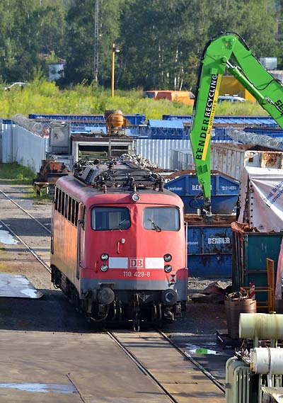 Neues vom "Onkel Bender"Zusammengefasst die wichtigsten Aktionen und Verschrottungsdaten der letzten Wochen:Am 12.7.2012 wurde 110 429 aus Köln-Deutzerfeld zum Bender überstellt. 143 164 ++ 12.07.2012 143 184 ++ 18.07.2012 140 868 ++ 23.07.2012 143 144 ++ 27.07.2012 Aktuell steht 110 429 einsam auf dem Bender-Hof und wartet auf die Zerlegung:Des Weiteren wurde das Bender-Anschlussgleis verschwenkt und zwar direkt an das Überhol-/Ausweichgleis der Gz-Strecke !