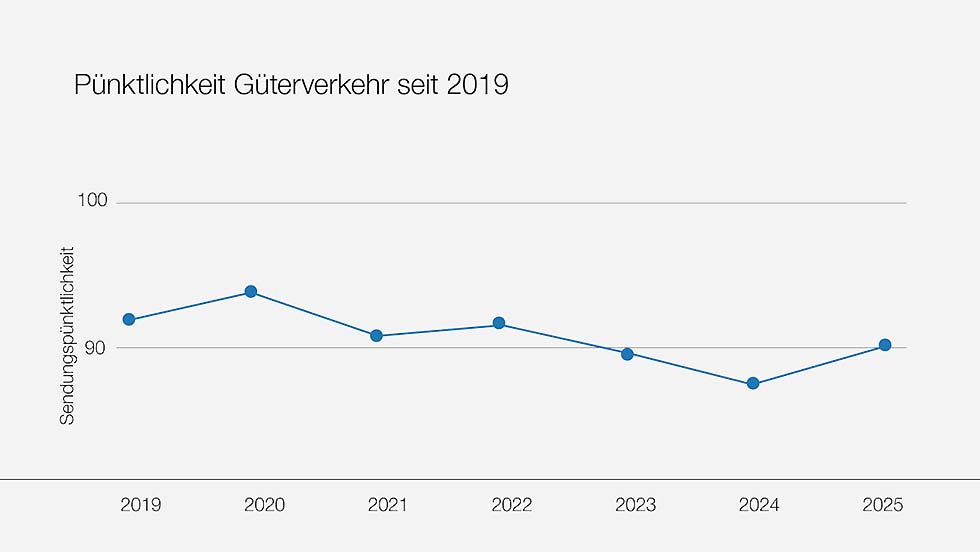 Pünktlichkeit Personenverkehr seit 2019: Jahr Zugspünklichkeit 2019 90,56% 2020 92,65% 2021 91,91% 2022 92,53% 2023 92,54% 2024 93,20% 2025 94,12% Quelle:/Fotos: SBB | |