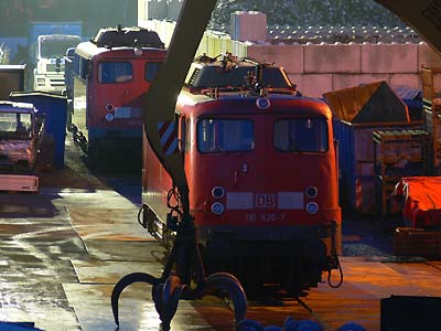 Die Frankfurter 110 411 wurde wie angekündigt in den Hochsicherheitstrakt zur Verschrottung überführt und leistet nun der Kölner Bügelfalte 110 420 Gesellschaft: