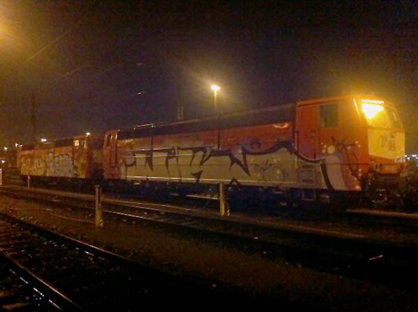 181 224 und 203 am 21. Dezember 2012 in Mannheim Rbf. Beide Loks sind in einen Güterzug eingereiht und werden wohl Richtung Gremberg abgefahren.