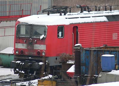 Bender, 13.01.2010![]() ![]() ![]() 143 608 wurde bereits ihrer Seitenwände und des Dachs entledigt, sodaß der Blick auf den noch kompletten Maschinenraum freigegeben ist: Dahinter steht 143 830 als nächster Kandidat an: Quelle:/Fotos: Markus Tigges, 13.01.2010 |