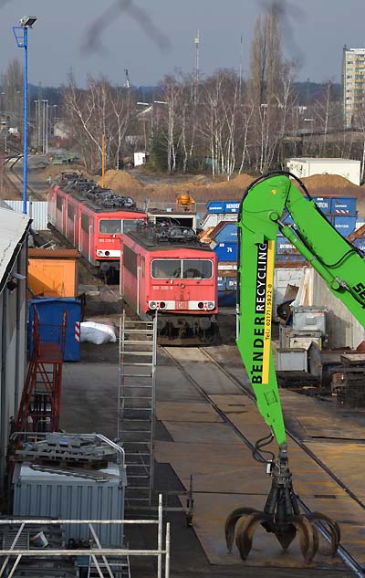 Am 11.02.2013 wurden in der Reihenfolge (vorn) 155 200 und 233, 258, 160 und 143 049 (Tor) aufs Bender Gelände überstellt.