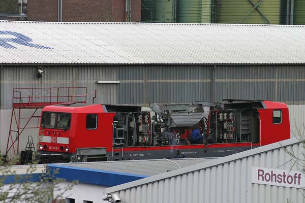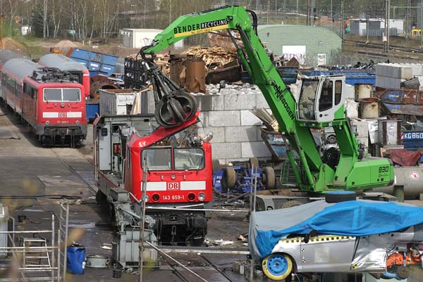 Indienstgestellt am 02.01.1991 wurde sie dem Bw Erfurt zugeteilt. Über die Zwischenstationierungen in Mannheim und Dortmund kam sie bereits Ende 1993 nach Nürnberg, wo sie bis zu ihrer Abstellung beheimatet war. Schade drum, irgendwie war sie doch etwas Besonderes ... Ich war in den Mittagsstunden des 17.04.2013 vor Ort und habe einige Aufnahmen machen können. Quelle:/Fotos: Marco Kretschmer | |
