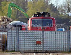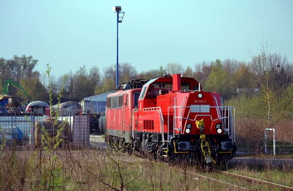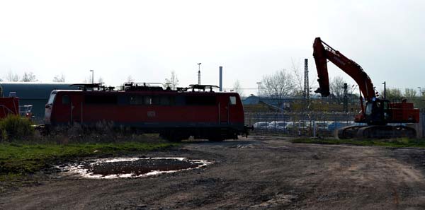 Es tut sich wieder was in Opladen...Die erst seit Kurzem im Einsatz befindliche Gravita 261 107 hat am Morgen des 22.04.2013 die Schrottlok. 111 085 von Köln-Kalk nach Opladen/Bender zur Zerlegung gebracht.Quelle:/Fotos: Markus Tigges | |