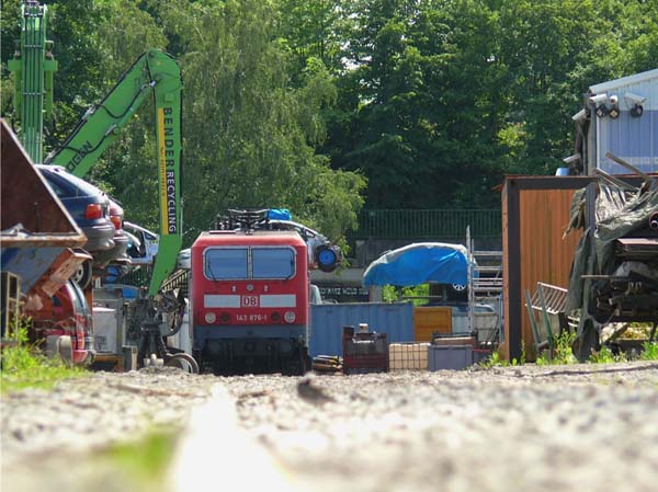 Bender: Da war es nur noch eine...143 058 ++ 13.06.2013143 956 ++ 14.06.2013 143 876 war letzte Woche die erstmal letzte Lok auf’m Bender Gelände... Ein weiteres Bild wurde uns von Gert Schüler zugesendet: Quelle:/Fotos: Markus Tigges/Gert Schüler | |