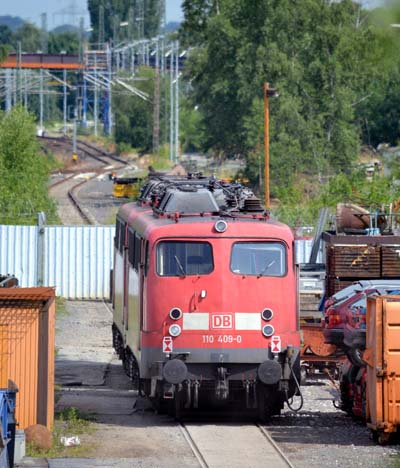 Neuzugang von zwei 110ern beim BenderHeute Vormittag in Opladen gesichtet: Am 25./26.06.2013 wurden die beiden ehemaligen Dortmunder 110 409 + 110 427 vom "Zwischenparkplatz" Köln-Kalk Nord nach Opladen/Bender überstellt.Heute Mittag stehen die beiden Bügelfalten hinterm Tor auf dem "Hochsicherheitstrakt":Gruselkabinet für 143er Freunde: Die Überreste der längst zerlegten 143 956-1 ragten jetzt wieder aus dem Schrotthaufen empor Quelle:/Fotos: Markus Tigges | |