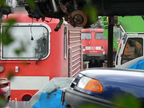 Am 29. Juni 2013 waren die 110 409 und 110 427 beim Bender im Fokus. Offtopic möchte ich den angrenzenden "Saab-Friedhof" neben der Einfahrtspforte zur "Endstation" erwähnen. Übrigens ist die BR 143-876 noch gar nicht angetastet worden. Quelle:/Fotos: Gert Schüler | |