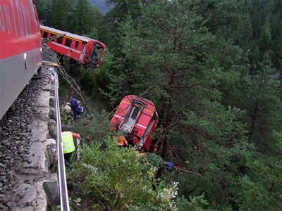 Am Mittwochmittag ist ein Zug der Rhätischen Bahn zwischen Tiefencastel und Thusis von einem Erdrutsch erfasst worden. Drei Personenwagen entgleisten. Elf Personen wurden verletzt.Kurz nach 12.30 Uhr fuhr der Zug der Rhätischen Bahn von Tiefencastel in Richtung Thusis. Zwischen den Tunnels Salons und Mistail wurde er von einem Erdrutsch erfasst. Drei Personenwagen entgleisten. Einer davon rutschte vom Bahntrassee ab und kam nach zehn Metern in den Bäumen zum Stillstand. Fünf Personen wurden schwer, sechs Personen leicht verletzt. Unter den Verletzten befinden sich zwei Personen mit japanischer Staatsangehörigkeit sowie ein australischer Staatsangehöriger. Die übrigen Verletzten sind Schweizer. Die Rega und die Ambulanz überführte sie in die umliegenden Spitäler. Grossaufgebot an Rettungskräften Im Zug befanden sich rund 140 Personen. Die Passagiere wurden zum Bahnhof Tiefencastel gebracht, wo sie betreut und verpflegt wurden. Mit Bussen wurden sie weitertransportiert. Im Einsatz stand ein Grossaufgebot von rund 180 Rettungskräften der Feuerwehr, der Rega, der Sanität, der Alpinen Rettung, des Care Teams Grischun, der Kantonspolizei Graubünden sowie zahlreiche Mitarbeiter der Rhätischen Bahn. Bahnersatz eingerichtet Aufgrund der bisherigen Erkenntnisse bleibt die Albulalinie voraussichtlich für rund zwei Tage gesperrt. Reisende müssen mit längeren Fahrzeiten rechnen. Einschätzung der Gefahrensituation für den Kanton Graubünden Der Kanton Graubünden ist im Juli im Vergleich zu den andern Kantonen bisher von grösseren Niederschlagsmengen verschont geblieben. Die Niederschlagsmengen im Juli waren aber auch in Graubünden überdurchschnittlich. Demzufolge sind die Böden auch in Graubünden durch die laufenden Niederschläge der vergangenen Wochen stark gesättigt. Mit den Niederschlägen von 40 bis 60 mm in den vergangenen 24 Stunden hat sich die Gefährdung durch Rutschungen und Hangmuren verschärft. Es sind Hangmuren und lokale Rutschungen abgegangen und die Bäche führen sehr viel Wasser. Vereinzelt können dadurch auch Murgänge (Rüfen) in Bachgräben ausgelöst werden. Wo genau solche Ereignisse niedergehen, lässt sich aber nie voraussagen. Dies hängt insbesondere von der Hangneigung, der bereits vorhandenen Wassermenge im Boden, der Niederschlagsmenge und von den geologischen Verhältnissen im Untergrund ab. In der Zwischenzeit hat sich die Lage durch das Nachlassen der Regenfälle etwas entschärft. Die Gefahr ist aber nach wie vor latent vorhanden. Mit dem Ende der Niederschläge und der Wetterberuhigung in den nächsten Tagen ist mit einem Rückgang der Gefährdung zu rechnen. Das Amt für Wald und Naturgefahren verfolgt die Lage laufend und ist bei verschiedenen Gemeinden im Einsatz. Quelle:/Fotos: Kantonspolizei Graubünden | |