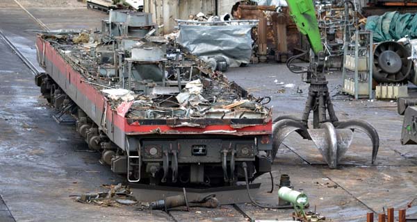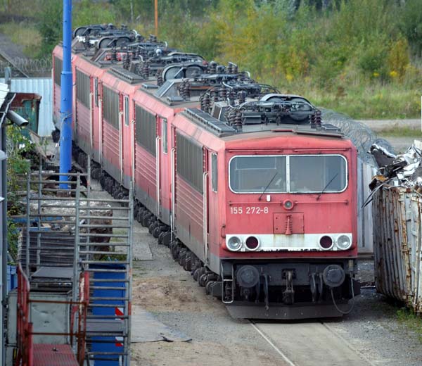 155 221 wurde zerlegtAm Montag-Vormittag begannen die Zerlegungsarbeiten beim BENDER an den ausgemusterten 155ern. Die erste in der Reihe - 155 221 - mußte folglich auch als erste "dran glauben". Bis zum Nachmittag war fast alles bis auf den Rahmen "abgeräumt" und dieser auch schon zerteilt. Somit:155 221-5 ++ 15.09.2014