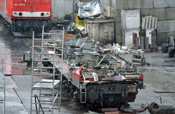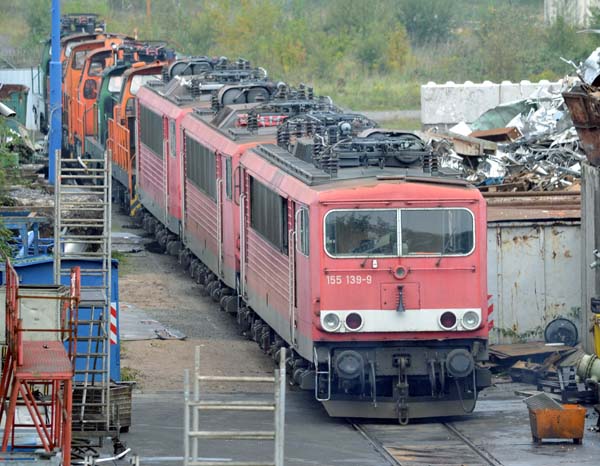 Neuzugänge beim Bender in OpladenAm 19.09.2014 wurden 6 ausgemusterte RBH-Loks zur Verschrottung nach Opladen überstellt. Es handelt sich um 4 Rangierdiesel (RBH 643 , 576 , 582, 450) und zwei Eloks (RBH 017, 004), welche von der MEG Lok 275 218 (Leihlok bei RBH) gezogen wurden.- RBH Loks wurden bisher meines Wissens nicht beim Bender verschrottet - Dieselloks wurden bisher nicht zerlegt, zumindest nicht in den letzten 10 Jahren (vtl. vorher irgendwelche Kleinloks?) 155 105 ++ 20.09.2014