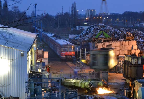 Weitere 420 sind beim Bender gelandetErneute Überstellung von 4 x ET420 durch 185 071 am 25.11.2014 aus Rüsselsheim nach Opladen.Es handelt sich um folgende Einheiten: 420 267 + 421 267 + 420 767 420 311 + 421 311 + 420 811 420 378 + 421 378 + 420 878 420 337 + 421 337 + 420 837 Die 4 x ET420 beim Bender am Morgen des 26.11.2014. Im Vordergrund wird noch ein ausgemusterter Transformator zerlegt, der am Vortag auf der Schiene angeliefert wurde.
