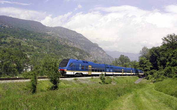 Der neue FLIRT3, der dank seines modularen Aufbaus den neusten TSI-Normen und -Standards entspricht, deckt die gesamte Palette der möglichen EMU-, DMU- und BMU-Zugkonfigurationen ab. Dadurch kann jeder Kunde den Zug hinsichtlich der Funktionalitäten und Betriebseigenschaften auf seine Bedürfnisse anpassen – sei dies für EMU (elektrische Triebzüge), für DMU (dieselelektrische Triebzüge) oder, wie in der Region Aostatal, für bimodale Züge. Zum Auftragsumfang des Auftrags gehören Personalschulungen, technische Dokumentationen, Ersatzteile sowie ein Vollwartungsvertrag über fünf Jahre. Zudem besteht eine Option auf weitere fünf Züge und eine Verlängerung des Wartungsvertrags um drei Jahre. Dadurch würde sich der Auftrag auf rund 94 Millionen Euro erhöhen. Tiefer Energieverbrauch Wie alle FLIRT-Züge weisen auch diese die folgenden typischen Merkmale auf: eine grosszügige, transparente Innenraumgestaltung, grosse Mehrzweckflächen in den Eingangsbereichen sowie Wagenkästen in Aluminium-Leichtbauweise, was zu deutlich tieferem Energieverbrauch und somit auch zu wesentlich tieferen Energiekosten führt. Die dreiteiligen Züge verfügen über 178 Sitze, darunter 19 Klappsitze. Die Züge erreichen eine Höchstgeschwindigkeit von 160 km/h im E-Modus und 140 km/h im D-Modus. In der Zugmitte befindet sich eine geräumige Toilette, die den TSI-PRM-Anforderungen entspricht. Jede Zugeinheit besteht aus drei Wagen und einem dazwischenliegenden Diesel-PowerPack-Modul. Ein vierter Wagen kann hinzugefügt werden, falls zu einem späteren Zeitpunkt ein höherer Kapazitätsbedarf besteht. Die Wagenkästen des FLIRT3 sind aus spezifischem Leichtmetall gefertigt, der Herstellungsprozess basiert auf der integralen Bauweise von Stadler, die sich vielfach bewährt hat. Besondere Aufmerksamkeit galt den Anforderungen in Bezug auf die Wartung und Instandhaltung. Alle Komponenten des Antriebssystems sind so geschickt und dabei ergonomisch angeordnet, dass sie durch Luken und Türen leicht zugänglich sind. Die Antriebsausrüstung für die dreiteiligen Züge hat im Elektrobetrieb und unter einer 3-kV-Oberleitung eine maximale Leistungskapazität von 2600 kW sowie eine Kapazität von 700 kW im Dieselbetrieb. Die thermische Leistung stammt aus zwei hoch entwickelten Achtzylinder- und Common-Rail-Dieselmotoren, die den EURO-IIIB-Emissionsvorschriften entsprechen.