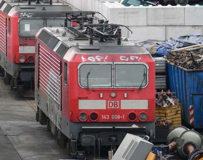 143 008 steht als nächster Verschrottungskandidat auf`dem Hof beim Bender in Opladen