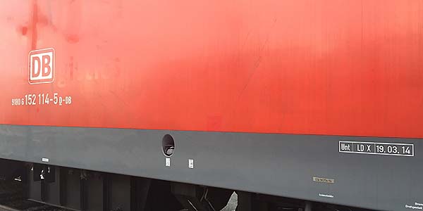 Unt LD X 19.03.15 Die 152 114 wurde im Frontbereich des Fst. 2 nach dem Unfall neu lackiert.