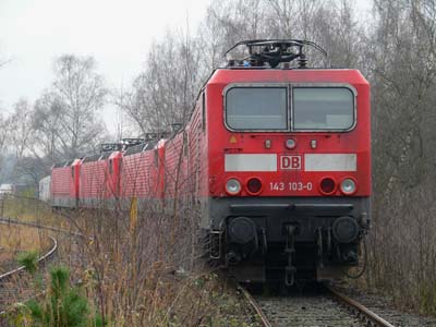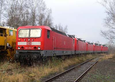 Bender, 10.12.2008![]() ![]() Die 143er beim Bender haben „Freigang“ – sie mußten das Feld mal wieder einem ausrangierten Transformator überlassen und wurden auf ein Abstellgleis außerhalb des Firmengeländes gezogen. Die ehemaligen Kieler 143 103, 082, 118, 127 und 294 konnten bei der Gelegenheit aus der Nähe abgelichtet werden. Interessanterweise haben alle Loks bereits eine zweite Fristverlängerung erhalten, was schließlich auch zur Abstellung führte. Quelle:/Fotos: Markus Tigges |
