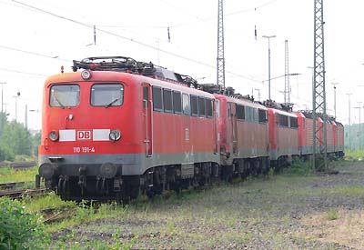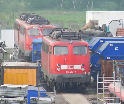 Bender, Opladen 05.06.2008![]() ![]() Als Schad R 70722 (Tfz 143, Wagenzuglast 504 t, Wagenzuglänge 119 m HG 80 km/h) ist heute der Schrottlokzug aus Nürnberg Hgbf in Opladen eingetroffen. Er ist gegenüber dem Stellwerk abgestellt und wird sicherlich in den nächsten Tag zum nahegelegenen Bender überstellt. 140 394 wurde übrigens heute (05.06.2008) komplett zerlegt. Bis auf die Drehgestelle, die säuberlich verpackt scheinbar noch als brauchbare Ersatzteile dem Alteisen entkommen. Als nächste ist morgen 140 504 dran und dann geht’s schon den 110ern an den Kragen, als erste 110 413 Quelle:/Fotos: Markus Tigges | |