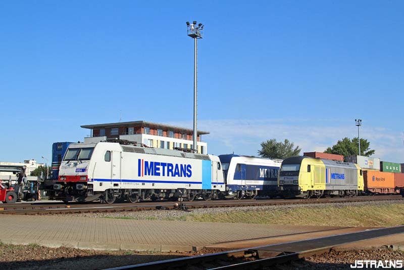 Die 185 635 hat nun auch Metrans-Logos erhalten. Die Aufnahme zeigt die Lok am 22. Juni 2016 im Metrans-Terminal in Dunajska Streda. Die Lok wird zusammen mit der 185 638 vor allem in Ungarn im Einsatz stehen.