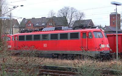 Bender/Opladen, 09.02.2007 Am Freitag, 09.02.2006 sind in Opladen eingetroffen: Die beiden Frankfurter 110 499 + 110 407 (beide z 23.05.2006). Die Loks stehen noch auf Gl. 6 im (vollkommen verwucherten) Bf Opladen und werden wohl in dieser Woche zum Bender überstellt. Quelle:/Fotos: Markus Tigges |