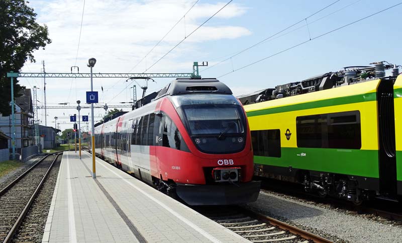 ÖBB: LED-Spitzensignal bei der Reihe 4124Anscheinend wird bei den Talenttriebwagen der ÖBB das Spitzensignal auf LED umgebaut. Das Bild zeigt den 4124 008 (mit LED-Spitzensignal) mit R 9984 am 4.9.2016 im Grenzbahnhof Pamhagen. Im Hintergrund ist noch der abgestellte ROEEE 4744.303 zu sehen.