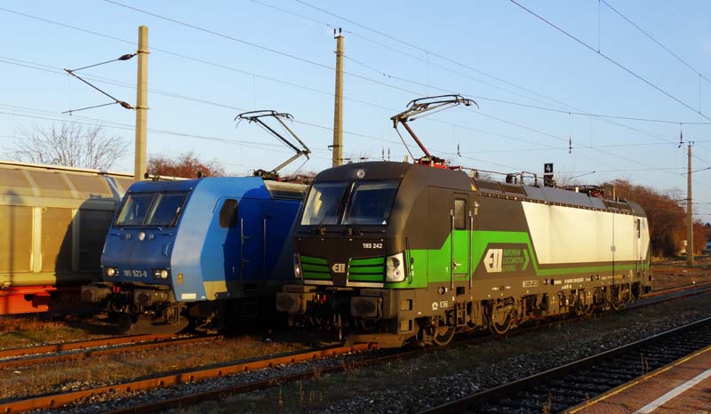 Aus dem Alltag: Umschlichten in GramatneusiedlDie für das EVU ECCORAIL fahrenden Triebfahrzeuge werden bei Leistungspausen im östlichen Österreich zumeist im Bahnhof Gramatneusiedl hinterstellt. Am 4.12.2016 gab es die Gelegenheit, zwei dieser Loks beim Umschlichten zu fotografieren. Umschlichten deshalb, weil die benötigte 185.523 von der 193.242 zugeparkt war.