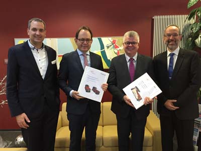 MGBahn bestellt neue Lokomotiven-Flotte bei StadlerStadler entwickelt, baut und liefert sieben Lokomotiven an die Matterhorn Gotthard Bahn (MGBahn). Der Auftrag umfasst zwei elektrische Rangierloks und eine dieselelektrische Rangierlok mit reinem Adhäsionsantrieb sowie vier dieselelektrische Lokomotiven mit Zahnrad- und Adhäsionsantrieb für den Einsatz bei Infrastrukturarbeiten. Das Vertragsvolumen beläuft sich auf über 23 Millionen Schweizer Franken. Die Neubeschaffung führt zu einer Homogenisierung der MGBahn-Flotte und einer erheblichen Reduktion der Lärm- und Abgasemissionen.Fernando Lehner, Unternehmensleiter der MGBahn, und Peter Jenelten, Executive Vice President Marketing & Sales von Stadler, haben in Brig den Vertrag für die Lieferung von sieben Lokomotiven unterschrieben. Der Vertrag zwischen der MGBahn und Stadler umfasst die Lieferung von drei Rangierlokomotiven, davon zwei mit elektrischem Antrieb (Typ Tea 2/2) und eine mit dieselelektrischem Antrieb (Typ Gm 2/2) sowie vier dieselelektrische Zahnrad- und Adhäsions-Lokomotiven (Typ HGm 2/2) für den Einsatz bei Infrastruktur- und Gleisbauarbeiten. Das Auftragsvolumen beläuft sich inklusive Reservematerial auf insgesamt über 23 Millionen Schweizer Franken. Die neuen elektrischen Rangierlokomotiven ersetzen bestehende, in die Jahre gekommene Diesellokomotiven und sorgen so für umweltfreundlichen Rangierbetrieb. Bei den Zahnrad-Infraloks handelt es sich um Neubeschaffungen. Sie werden einerseits den höheren Bedarf der MGBahn bei den laufenden Modernisierungsarbeiten an der Infrastruktur abdecken, aber auch die bisher bei Infrastrukturbauten eingesetzten Triebfahrzeuge entlasten, die eigentlich hauptsächlich für den Personenverkehr bestimmt sind. Das technische Konzept der neuen Kleinlok-Familie bietet der MGBahn einen optimalen Betrieb der Fahrzeuge. Alle drei Lok-Typen verfügen über die gleiche Kabine, die gleiche Traktions- und Leittechnikstruktur, die gleichen Steuerungselemente und die gleiche Bedienphilosophie. Die Subsysteme in den Apparateschränken sind benutzer- und unterhaltsfreundlich eingebaut – teilweise auf Auszugsschienen und mit Zugangs-Klappen. Die sieben Meterspur-Lokomotiven sind allesamt 8.37 m lang und 2.65 m breit. Die Höhe variiert je nach Antriebskonzept. Das einheitliche Fahrzeugkonzept ergibt trotz drei Loktypen viele Gleichteile. Die Loks verfügen über eine leistungsfähige Traktionsausrüstung von ABB mit einem im Vorbau angeordneten Doppelblock-Stromrichter. Die Elektro-Rangierloks besitzen als Besonderheiten einen zusätzlichen Batterieantrieb für nicht elektrifizierte Gleise, eine Funkfernsteuerung sowie drei aus der Kabine bedienbare Kupplungssysteme für die diversen Typen von zu rangierenden Fahrzeugen. Die Fahrzeuge mit dieselelektrischem Antrieb verfügen über einen umweltfreundlichen Dieselmotor von Mercedes mit Abgasstufe Euro-lll-B. Die Zahnrad-Infraloks können auch die Streckenabschnitte in der Schöllenen und auf der Gornergrat Bahn befahren. Signing-Zeremonie, v.l.n.r. Ivan Pfammatter, Leiter Rollmaterial & Traktion MGBahn; Fernando Lehner, Unternehmensleiter MGBahn; Peter Jenelten, Executive Vice President Marketing & Sales Stadler; Urs Wieser, Leiter Verkauf Tailor Made StadlerQuelle:/Fotos: Stadler Rail Group | |