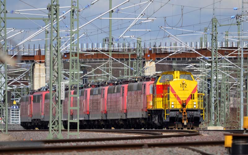 Bender-NeuzugangAm 28.02.2017 gegen 12.45 Uhr konnte in Opladen die Überstellung der 181 214, 207, 220, 210, 219, 223, 115 205, 181 209 dokumentiet werden - Zuglok war MEG 102 (203 153), welche dann in Opladen umsetzte und die Fuhre ins Anschlußgleis drückte.203 153 (MEG 102) aufgenommen am 28.02.2107 in Opladen Überstellung 181 214, 207, 220, 210, 219, 223, 115 205, 181 209 zum Bender: