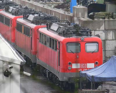 140 601 ++ 08.11.2010 bestätigt. Am Morgen des 09.11.2010 steht 140 299 im strömenden Regen beim Bender zur Zerlegung an.
