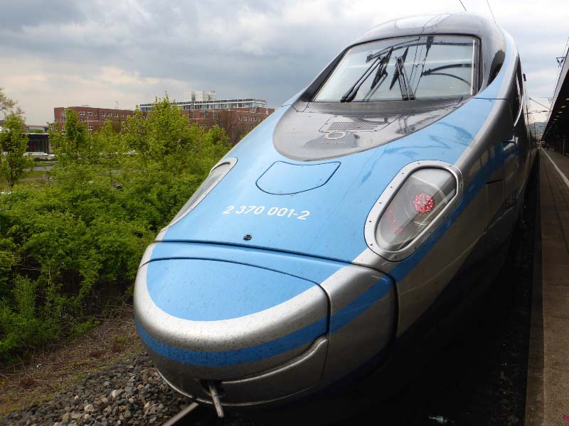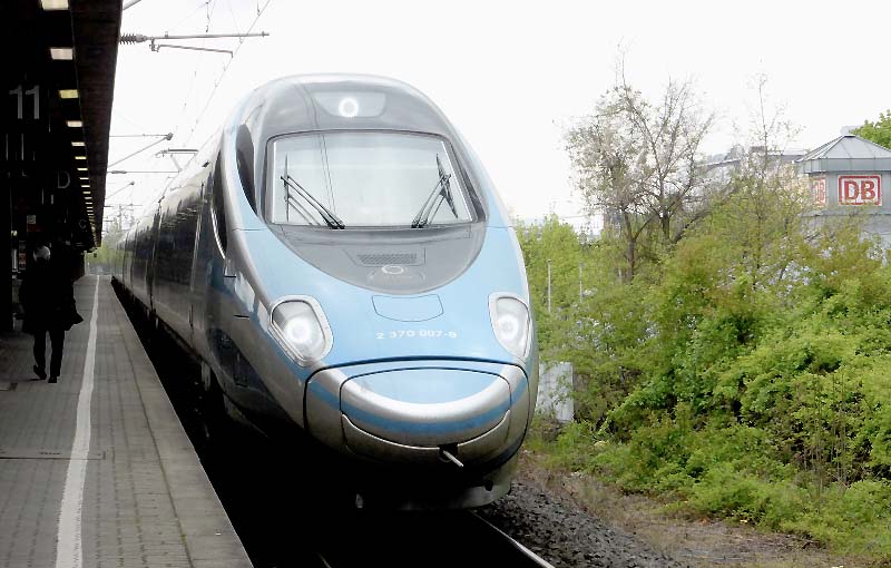 Polnischer Pendolino auf Testfahrt in DeutschlandSchon seit längerer Zeit weilt der polnische Pendolino 2370 001/007 (ED250-001) zu Zulassungsfahrten in Deutschland. Seit 7. April ist er auf der Neubaustrecke zwischen Hannover und Göttingen unterwegs. Am 3. Mai 2017 konnte der Zug bei einem Stopp in Göttingen fotografiert werden.Quelle:/Fotos: Albert Winkens | |