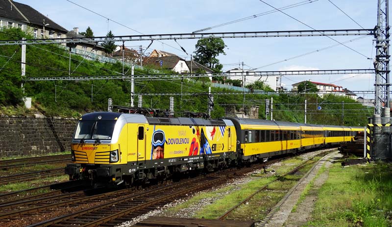 RegioJet-193 227 neu beklebtSeit 8.5.2017 ist die für das EVU RegioJet fahrende ELL 193.227 in dessen gelben Hausfarben zu sehen. Zudem ist sie für den kommenden Sommer noch als Werbelok unterwegs. Die Aufnahmen zeigen die 193 227 mit RJ 1038 am 8.5.2017 in Bratislava hl.st.