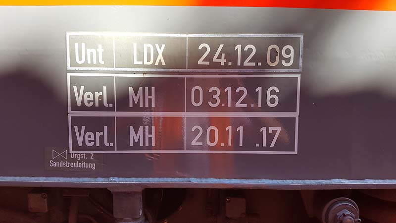 Die ehemalige Münchener 111 130-1 bekam im Werk München am 03.12.2016 ihre zweite Verlängerung und darf nun bis zum 20.11.2017 eingesetzt werden. 91 80 6 111 130-1 D-DB Unt LDX 24.12.09 Verl. MH 03.12.16 Verl. MH 20.11.17 (aufgenommen am 29. Juli 2017) Quelle:/Fotos: Florian Riedl | |