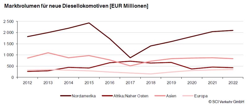 SCI Verkehr: Diesellok-Geschäft auf historischem TiefHersteller konsolidieren sich – ab 2018 wieder steigende NachfrageDie weltweite Beschaffung neuer Diesellokomotiven hat im Jahr 2017 erneut abgenommen und mit einem aktuellen Marktvolumen von 4,1 Mrd. Euro den niedrigsten Stand seit Anfang des 21. Jahrhunderts erreicht. Zentraler Treiber für diese Entwicklung ist jedoch nicht in erster Linie die global wachsende Skepsis in Dieselantriebe. Stärker wirken gerade in den großen Märkten erhöhte Emissionsnormen und dadurch steigende Anschaffungskosten sowie konjunkturell bedingt rückläufige Transportmarktzahlen. Vor allem in Asien findet eine fortschreitende Elektrifizierung statt, welche das D-Lok-Segment ebenfalls nachhaltig schwächt. Doch scheint die Talsohle durchschritten: Insbesondere aufgrund der Impulse vom nordamerikanischen Leitmarkt erwartet SCI Verkehr eine kurzfristige Erholung des Marktes mit jährlichen Wachstumsraten von 4% - 5% bis 2022. Bei den Herstellern hingegen steht der Konsolidierungsprozess erst am Anfang. Es zeichnen sich weitreichende strukturelle Veränderungen ab, welche die bisher bekannte Herstellerlandschaft grundlegend umkrempeln werden.