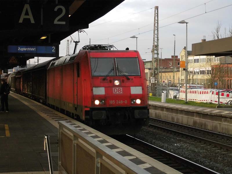 Keine Übergabe mehr in AlfeldAlfeld, 10. Januar 2018: Zugdurchfahrt sagt die Anzeige an Gleis 2 lapidar. Das ist die Übergabe nach Göttingen mit 185 249 als Zuglok. Kein Wechsel mit der Ilmebahn in Alfeld mehr. Der Göttinger wird nicht mehr in Alfeld gebrochen - vorbei ist die Übergabe der Übergaben.