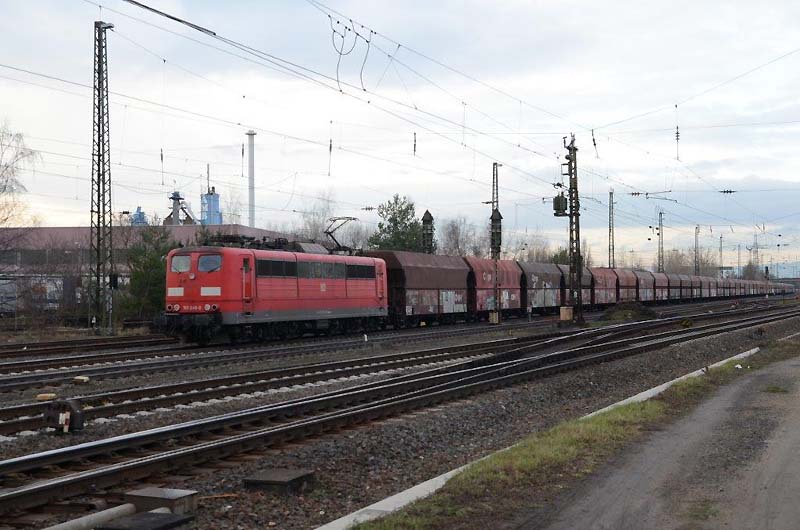 Von der Doppeltraktion zum Sandwich151 046 und 151 086 am 10. Januar 2018 mit Kohlejumbo in Mainz-Bischofsheim. Bis Mainz-Bischofsheim fährt er mit 151 in Doppeltraktion und in Mainz-Bischofsheim geht dann die vordere Lok nach hinten für die Sandwichtraktion und Weiterfahrt in den Freistaat Bayern...Die DB Kekse sind nur auf den Stirnsteiten entfernt worden, auf den Seiten sind die noch vorhanden und die Halterkennung ist mittlerweile auf Rpool (für Railpool GmbH, [D]-München) geändert worden...