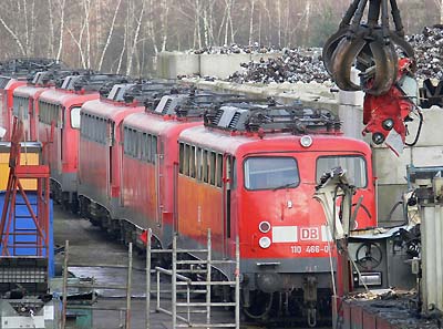 Bender-Update, 10.01.2011![]() ![]() Aktuelles aus Opladen: In der letzten Woche wurden 6 weitere Loks auf dem Bender-Gelände zerlegt, darunter die 143 331 und 140 827. Heute ging der Vollstrecker der 110 398 ans Blech-Kleid, am Dienstag folgt voraussichtlich die 110 466.