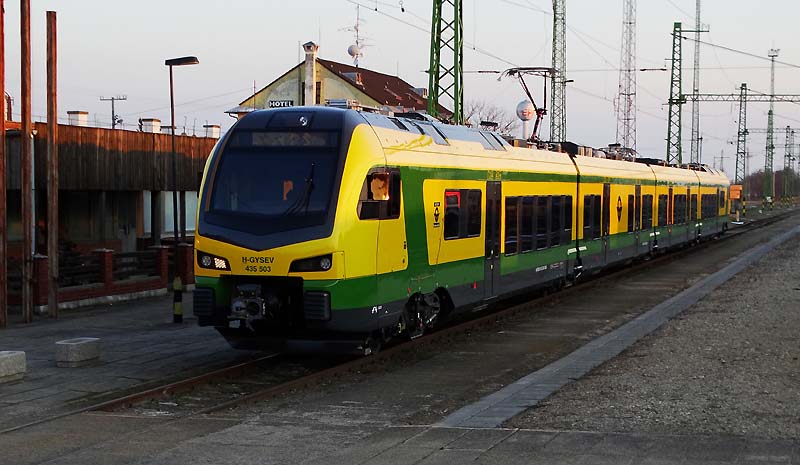 Neuer GySEV-Flirt auf TestfahrtenAufgrund von Testfahrten konnte am 25.2.2018 der neue GYSEV-Triebwagen 435.503 im ungarischen Grenzbahnhof Rajka fotografiert werden.