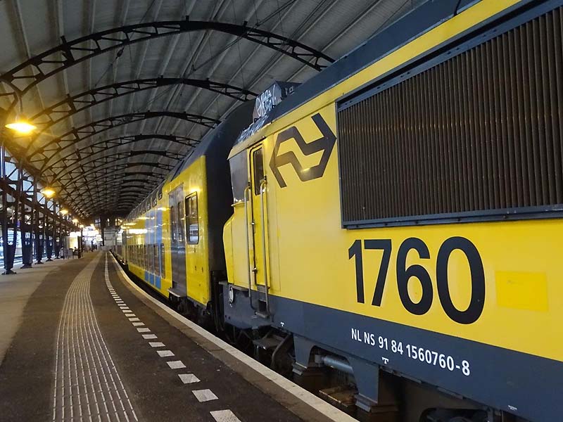 Noch Alltag: NS 1700 mit Doppelstock-ICNS Elektrolok 1760 in Haarlem am 23. März 2018 mit 4 Doppelstockwagen als Intercity 3400 Alkmaar - Heiloo - Castricum - Haarlem. Diese Zug fahrt morgens 4 x, am Abend wieder nur 4 x zurück.