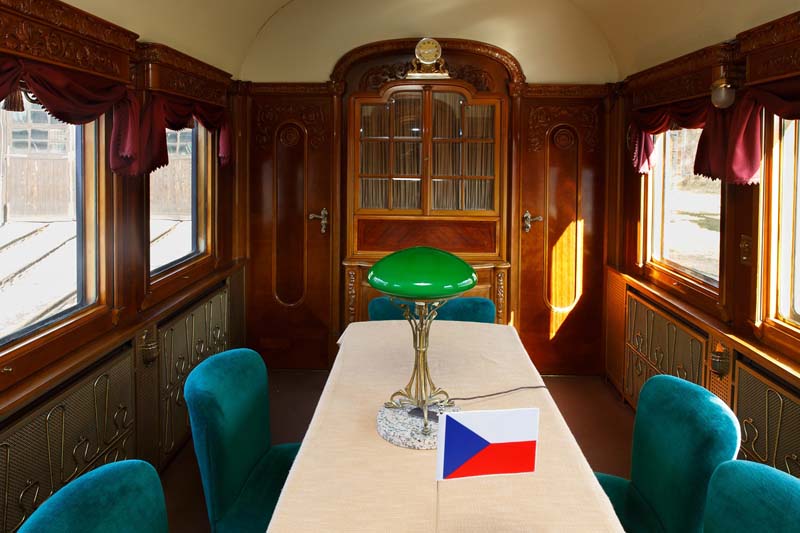 Dampflokomotive 464.202 (Závody V.I.Lenina /Škoda/, Plzen, 1956) Salonwagen Franz Ferdinand von Österreich-Este (Ringhoffer, Prag, 1909, für Präsident der Tschechoslowakei ab 1918) Salonwagen Tomas Garique Masaryk (Ringhoffer, Prag, 1930) Salonwagen Ludvik Svoboda und Gustav Husák (VEB Waggonbau, Bautzen, 1968) Schlafwagen Ca angepasst mit einer Ausstellung von 'Zug-Präsidenten' Begleitende Liegewagen und Diesellokomotive T 478.1010 (CKD, Praha, 1967) Route des Präsidentenzug 2018 29.6.– 2.7. Brno (CZ) 4.7. Bratislava (SK) 6.7. Nitra (SK) 8.7. Zvolen (SK) 9.7. Lucenec (SK) 11.7. Zilina (SK) 13.7. Kosice (SK) 16 – 17.7. Zlín (CZ) 19.– 20.7. Olomouc (CZ) 22.– 23.7. Pardubice (CZ) 7.– 8.8. Plzen (CZ) 10.– 12.8. Plasy (CZ) 14.– 19.8. Luzna u Rakovníka (Eisenbahnmuseum CD) (CZ) 21.– 26.8. Chomutov (Eisenbahndepot NTM) (CZ) 28.8.– 2.9. Praha