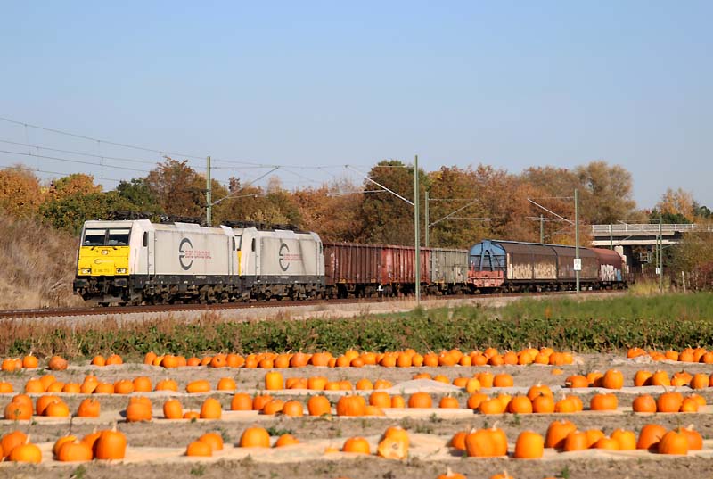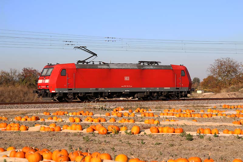 Kürbisse? Warum nicht! Böhl-Iggelheim, 13.10.2018: 185 519 mit einem Kohlezug Als Bahnfotograf ist man ja immer auf der Suche nach dem besonderen Bild. Begehrt sind dabei vor allem blühende Rapsfelder oder bunte Obstbäume. Deutlich mehr Glück muss man haben, will man z.B. Kürbisse mit Zügen auf einem Bild vereinen. Die Kürbiserne in Böhl-Iggelheim direkt neben der Bahn bietet aktuell die seltene Gelegenheit, die großen orangen Früchte mit dem bunten Zugverkehr zu vereinen. Ein paar sehenswerte Fotos hat uns Uwe Pfeiffer zugesendet, die wir Ihnen nicht vorenthalten wollen:
