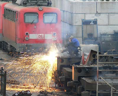 Bender-Update, 09.03.2011 Am Mittwoch Morgen (09.03.2011) wurde der letzte Zusammenhalt des Rahmens an der 140 752 mit dem Schneidbrenner gelöst - und somit wieder eine 140 weniger. Die nächste in der Reihe ist dann 140 612.140 752 ++ 09.03.2011 Quelle:/Fotos: Markus Tigges | |