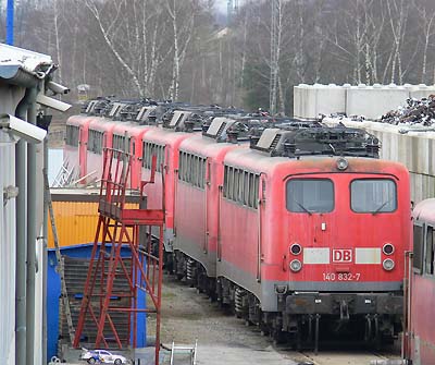 Bender-Update, 10.03.2011![]() ![]() 140 767 ++ 10.03.2011Mit der Zerlegung der 140 612 wurde am späten Nachmittag des 10.03. begonnen, somit voraussichtlich: 140 612 ++ 11.03.2011 Als die 140 612 zur Zerlegung vorgezogen wurde war der Blick frei auf den nächsten Kandidaten, 140 832, die schon deutliche Oxidationsspuren hat. Quelle:/Fotos: Markus Tigges | |